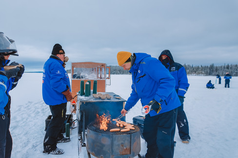กิจกรรมขี่รถ Snow Mobile ไปกลางทะเลสาป แล้วตกปลากลางทะเลสาป Staff จะสอนเทคนิคการตกปลาแบบอาร์กติกค่ะ ไกด์ก็มีบริการจุดไฟให้ผิงอุ่น ๆ พร้อมกับจิบกาแฟหรือชาผลไม้ร้อน ๆ และไส้กรอกย่าง ระยะเวลา : 3 hours