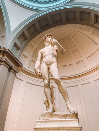 รูปปั้น เดวิด โดยมิเกลันเจโล หรือ ไมเคิลเองเจโล หนึ่งในรูปปั้นที่ดังที่สุดในโลก ซึ่งมิเกลันเจโลเป็นคนแรกที่เลือกเล่าเรื่องของ เดวิด ในตอนก่อนจะสู้กัน ลักษณะยืนในท่าทีที่ผ่อนคลาย แต่ก็มองไปด้วยสายตามุ่งมั่น และด้วยเรื่องกายวิภาคที่มีรายละเอียดสมบูรณ์สวยงามเหมือนมนุษย์จริง จึงทำให้เป็นรูปปั้นนี้ที่มีชื่อเสียงนั่นเองค่ะ จะ