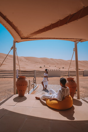 ที่นี่เป็นทะเลทรายที่มีชื่อเสียงมากในกลุ่มประเทศอาหรับ ซึ่งนิยมมานอนแคมป์กลางทะเลทรายกันค่ะ คืนที่ 2 ออมนัทมานอนกันที่ Desert Nights Camp คืนละ 88OMR วิลล่าดีมาก สะอาด แบ่งเป็นสัดส่วน เปิดออกมาเห็นวิวทะเลทรายตรงหน้าแบบนี้เลย
